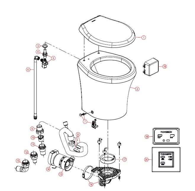| 15 | 385880068 | Motor/Macerator Assembly – 12VDC |